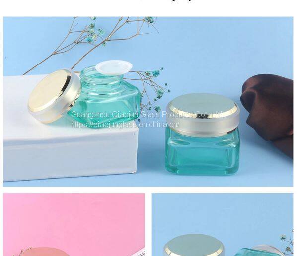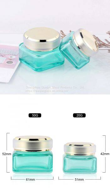 Excellent Quality 30G 50G Square Green Glass Cream Jar With Aluminum Lid