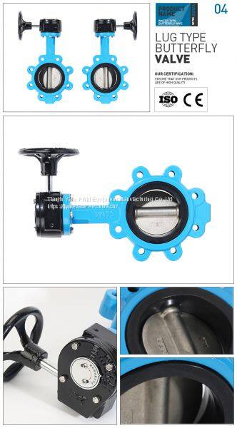 Lug conentric SS304 disc butterfly valve Lug double shaft pinless butterfly valve with lever