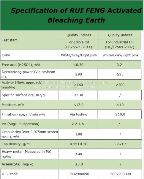 Guangxi Long'an Ruifeng Industrial&Trading Co.,Ltd.was founded in 2009.The production area of company covers an area of 30,000 square meters.The company has 60 million Yuan fixed assets, more than 200 employees and 16 R&D staff members.The main products include Ruifeng Brand activated bleaching earth, bentonite powder, industrial gypsums,etc.