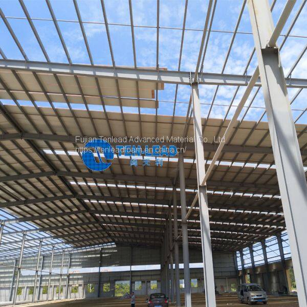 Roof insulation for steel structures (corrugated steel sandwich panels): Corrugated color steel sandwich panels are used for roof insulation of steel structures, which can make construction easier and lower cost. It has better thermal insulation performance than traditional rock wool or glass wool materials. Meanwhile, phenolic foam has better compressive strength and dimensional stability, which ensures the longer servicing life of roof.