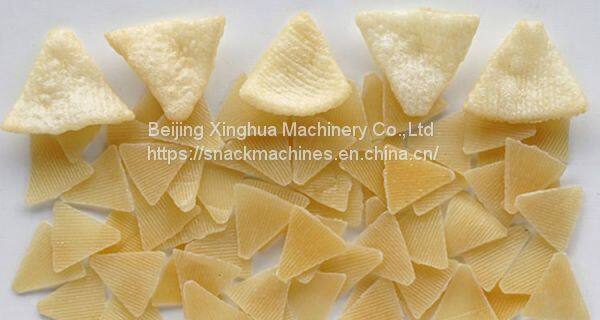Pellet chips snacks use wheat flour, corn starch, potato starch, whole potato flour as raw materials, chips are produced dried and semi-processed by the pellet making process of mixing, extruding, shaping and drying to produce dried pellets chips. this can use different roller to make round, triangle and others shapes for many more manufacturer and supplier sales.Pellet Chips Snacks