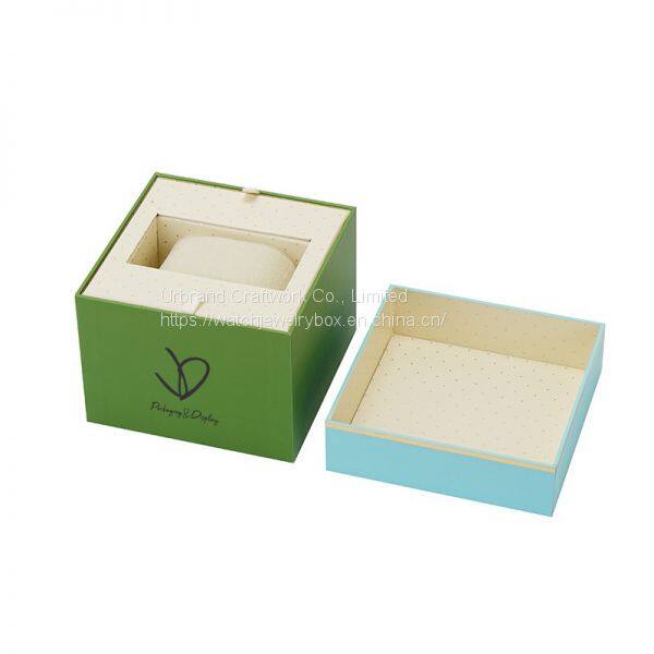 Green Rigid Paper Watch Box Two Pieces Cardboard Wacth Gift Box With Removable Insert