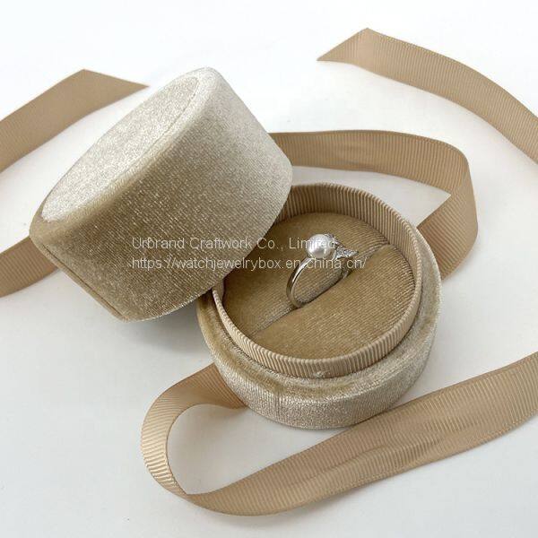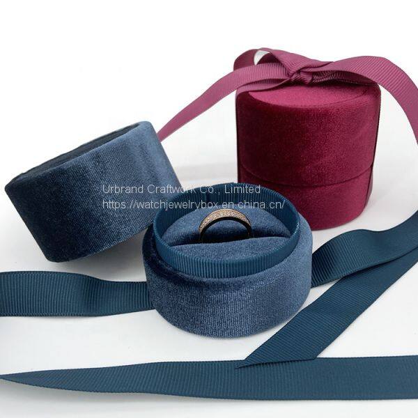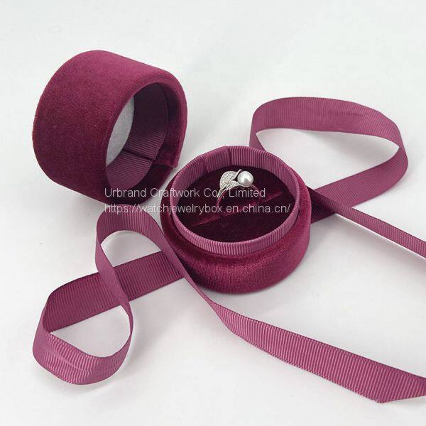 Luxury Small Pink Ring Gift Packaging Velvet Inserts Jewelry Round Box With Ribbon