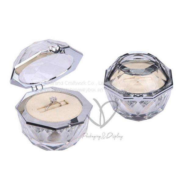Unique Design Crystal Transparent Marriage Ring Box Jewelry Diamond Ring Display Box With Creative Metal Side