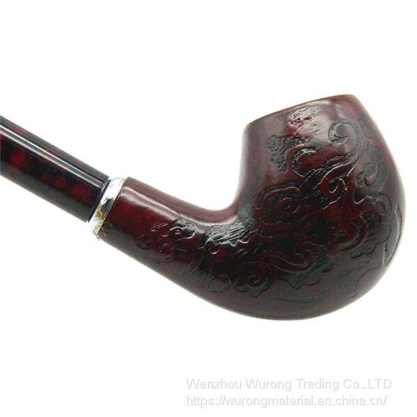 410mm Length Wooden Resin Long Tobacco Pipe With Small Flower Engraving Head for Smoking