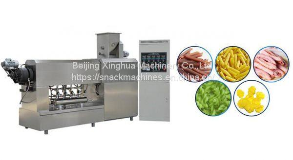 Single Screw Extruder Food Processing Machine can process automatically and continuously a great variety of flours and cereal/potato starches, both mixed and in pure state. single screw extruder machine manufacturer also can choose equipped with dosers for solid and liquid ingredients, high speed pre-mixer, mixing tank, extrusion group composed of motor with variable speed, gear box and thrust bearing group. Introduction of Single Screw Extruder Food Processor Machine