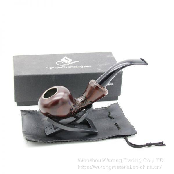 the tobacco pipe is made of wood and resin, its length is 160mm and the pipe diameter is 20mm, its has red bending head and short pipe, its unit weight is 95g.