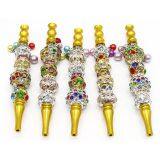 155mm Length Aluminum Alloy Cigar Metal Tube Yellow Smoking Pipes With Colorful Beads as Tobacoo Holder for Cigarette, Tobacco,