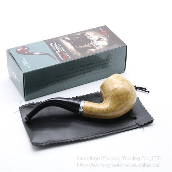 the tobacco pipe is made of wood and resin, its length is 140mm and the pipe diameter is of gradual change, its head are made of solid wood and short pipe, its unit weight is 66g.