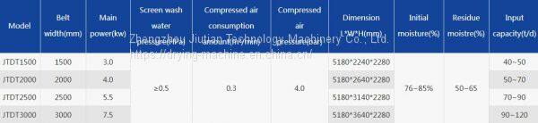 Belt dehydrator mainly consists of the main body (coconut coir dehydrator), air compressor, air processor, electric control device, net-washing water filter. The main body is composed of frame, hopper, filter mesh, tensioning device, adjusting device, driving systems, scraper, all kinds of bearing and roller, waste water tank, net-washing device.
