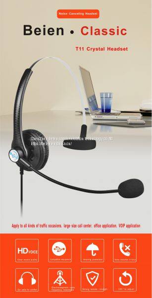 China Beien T11 RJ-USB Telephone Call Center Headset Noise-cancelling Headset Customer Service