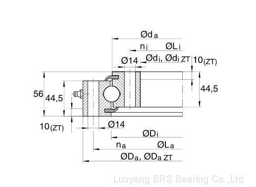 structure: four point contact ball slewing bearing without gear, with mounting holes