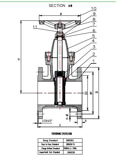 3. Flange: DIN2501/EN1092-2 PN10/16/25.