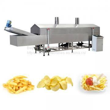 (1).Stainless Steel Potato Chips Frying Production Line consists of net belt conveying system, automatic elevating system, automatic filtrating system, oil temperature controlling system, oil adding system and heating system.