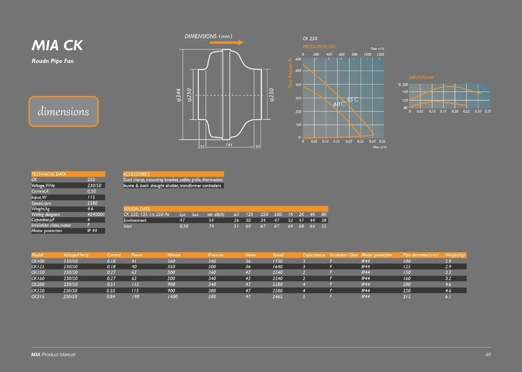 250mm CK Fan 900m3/h Centrifugal Fan Small Blower Fan With Metal Body Model: MIA-CK250