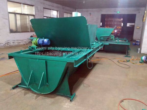 The canal bottom lining machine consists of four parts: feeding machine, spreading machine, trowel machine, and folding frame. The feeder is placed on the canal slope, the frame is connected with the spreader frame, and there are walking wheels at the bottom of the frame for traction and control of walking. Evenner, trowel and noodle collecting frame are placed in parallel at the bottom of the canal, keeping a distance between them.