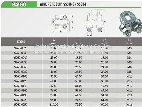 Wholesale 8mm Adjustable Fastener Stainless Steel 316 Small Cross Steel Wire Rope Clip