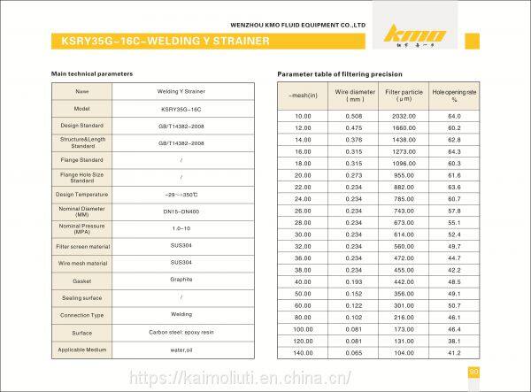 KSRY35G welded Y strainer is an indispensable device in the transportation pipeline system. It is usually installed at the inlet end of the equipment to filter the particulate impurities in the medium to, protecting the normal use of valves and other equipment. KMO's strainer has the characteristics of advanced structure, small resistance, and convenient drainage. The applicable medium for this product is water and oil. The filter can be made according to user requirements, and the internal parts are made of stainless steel, which is more durable. The connection way includes flange type and thread screw type. The product has small size, fine filtering accuracy, good filtering effect, easy installation and maintenance, low cost, and short sewage discharge time.