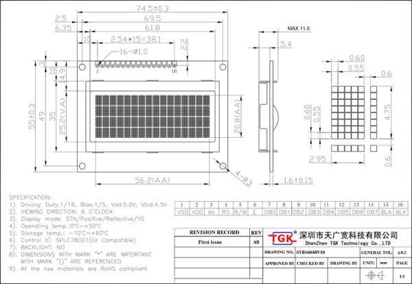 Lcd 16X4 Display TM164B Industrial Monochrome Stn Lcd 1604 Character 16 Pin Display Module Lcd 16x4 Display Screen 1604 Lcd Module
