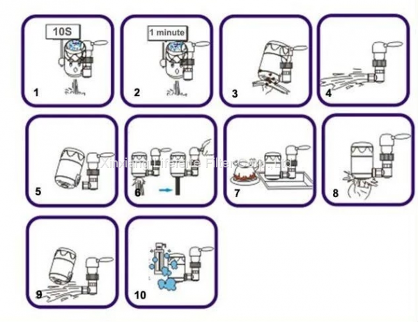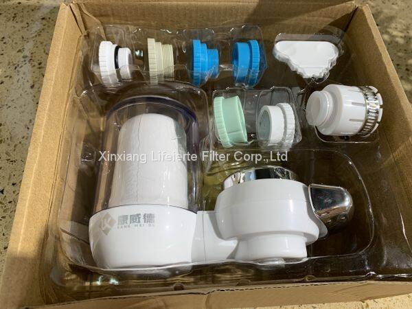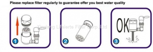 The tap filter series is filled with cabon fiber and granular carbon cartridge.It can be installed directly on the faucet.It includes a set of universal fittings for easy installing on any kinds of kitchen or bathroom faucet.This filter can remove chlorine,organic substances,taste and smell in the water.