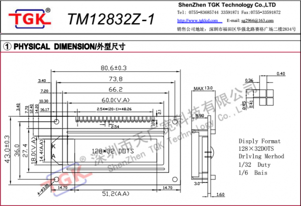 Lcd 128X32 Display TM12832Z-2 Industrial Monochrome Lower Interface Lcd 12832 Character 80.6X43mm Display Module Lcd 128X32 Display Screen 12832 Lcd Module