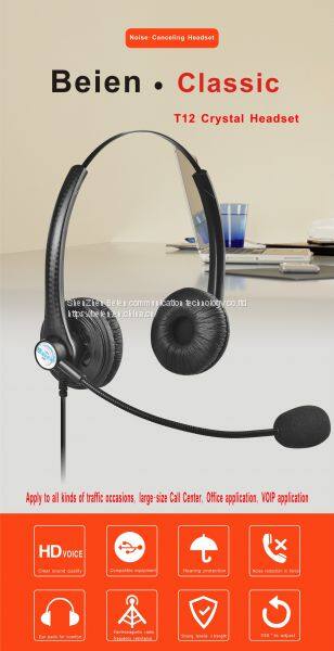 China Beien T12 RJ-USB Telephone Call Center Headset Noise-cancelling Headset Customer Service