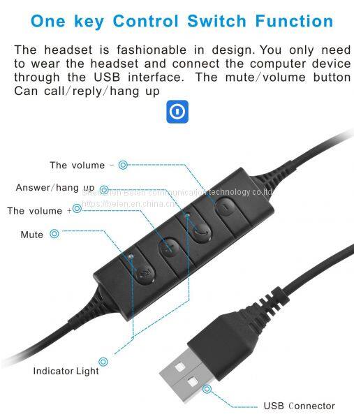 China Beien FC22 USB Business Telephone Headset for Call Center Customer Service Multimedia Teaching Headset