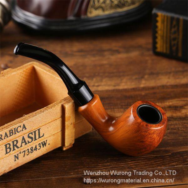 150mm Length wooden resin short tobacco pipe with yelllow solid wood bending head for smoking