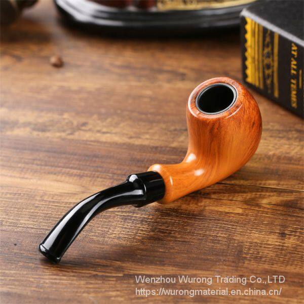 150mm Length Wooden Resin Short Tobacco Pipe With Yelllow Solid Wood Bending Head for Smoking
