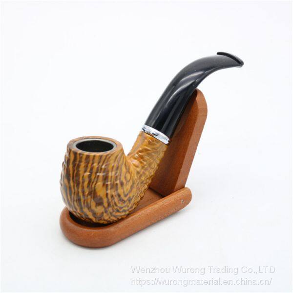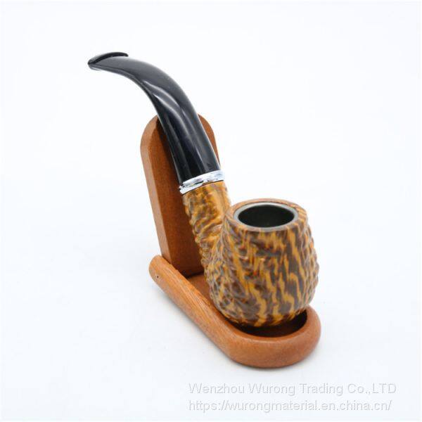 140 mm Length wooden resin short tobacco pipe with marble-pattern head for smoking