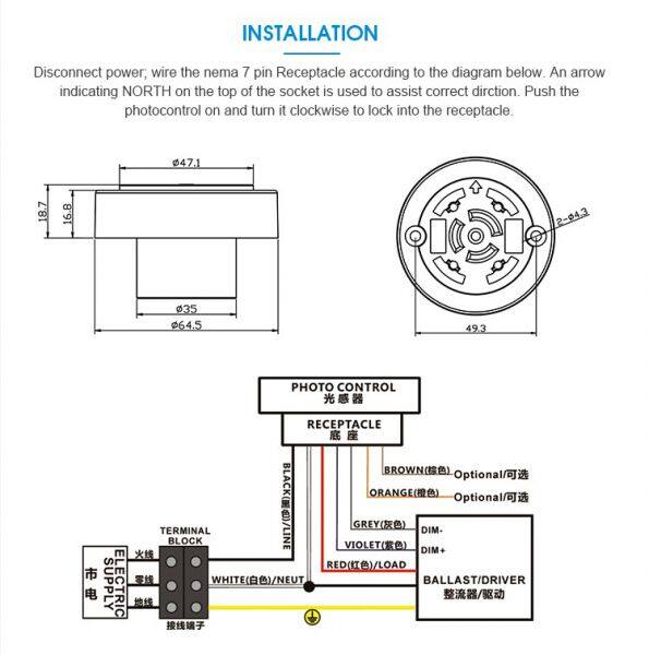 Ideal for outdoor commercial and utility lighting, the ANSI C136.41 compliant dimming receptacle