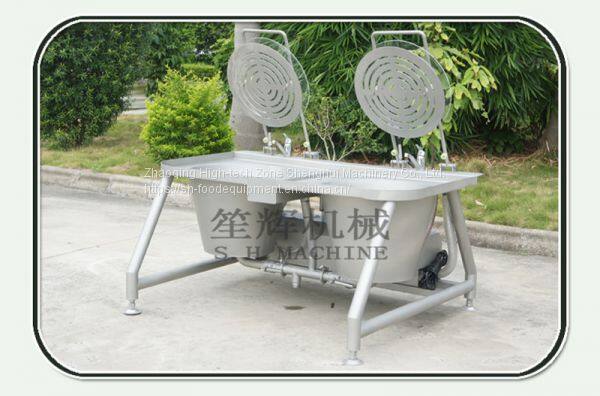 The characteristics of the double-cylinder basket washing machine: 1. Simple and easy to clean design. The low height is convenient for workers to operate with less effort. 2. Lifting the lid stops, and closing the lid starts automatically. 3. Double air pump, double ozone. The cleaning power of the two cleaning cylinders can be adjusted independently. 4. The matching vegetable basket can be put directly into the matching dehydrator for dehydration. Greatly reduce material waste and discharge time. 5. With floating filter collection function. 6. Ultrasonic cleaning function can be installed.