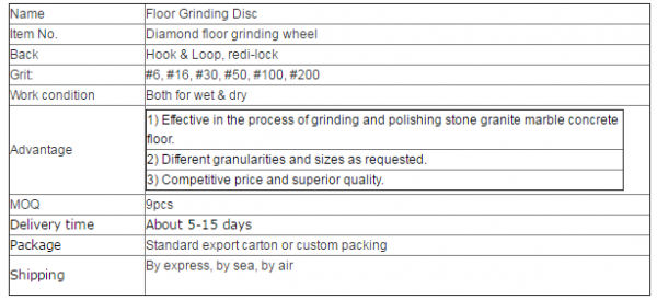 Abrasive Grinding Wet Diamond Floor Grinding Concrete Restoration Disc