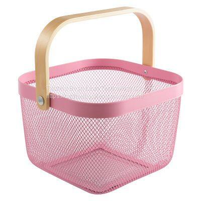 Wooden Handle Metal Wire Storage Laundry Metal Fruit Basket for Pantry Kitchen OrganizerNegotiableMOQ: 50 Pieces