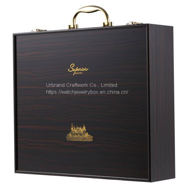 Wholesale Luxury Matte Lacquer Wooden Veneer Wine Gift Boxes Red Wine Packaging Suitcase With Handle