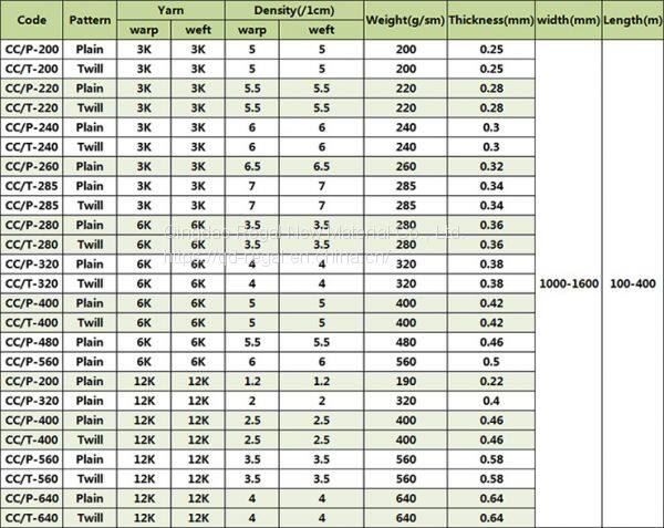 | Yarn | 3K / 6K / 12K |