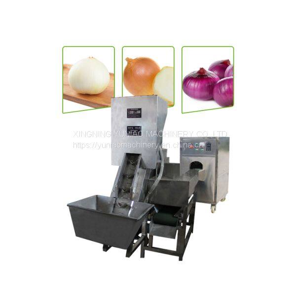 Simple design and convenient usage, adopts food grade 304 stainless steel chain automatically feeding machine. Saving labor and healthy instead of manual processing onion.