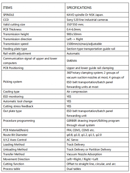 •Equip high speed CCD with automatic vision offset at set, especially for high precision and production of PCB cutting process.