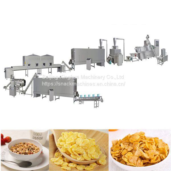 corn flakes production line Corn flakes/breakfast cereals are a kind of breakfast with high nutritional value. They usually use corn powder and other cereals as main raw material, through mixing, extruding, flaking, drying, baking, coating and cooling, to get crispy flakes. It always service as breakfast cereal mixed with milk of coffee. But it can also be a kind of leisure snacks. This process line can also make other shapes of cereals such as rings, balls, chocos, curls etc.
