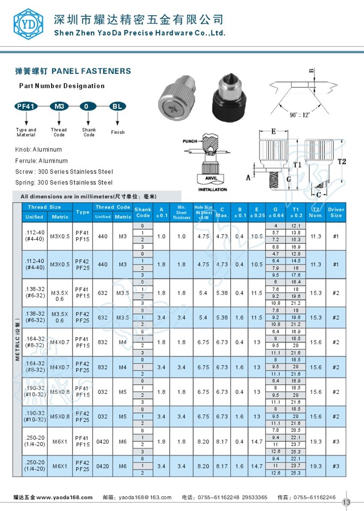 PF41-M3/M4/M5/M6 PF42-M3-M4/M5/M6 FLARE-MOUNTED ACCESS HARDWARE FASTENER