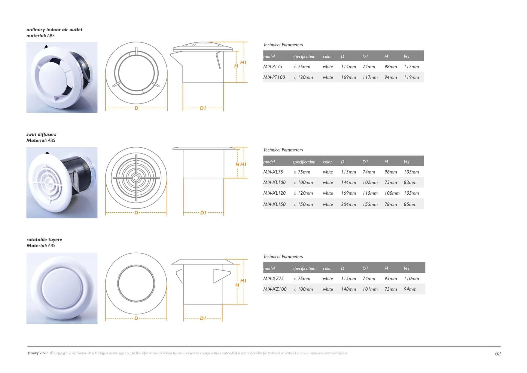 HVAC ABS Diffuser Plastic Louver Air Outlet Round Air Vent for Air Conditioning Ventilation System