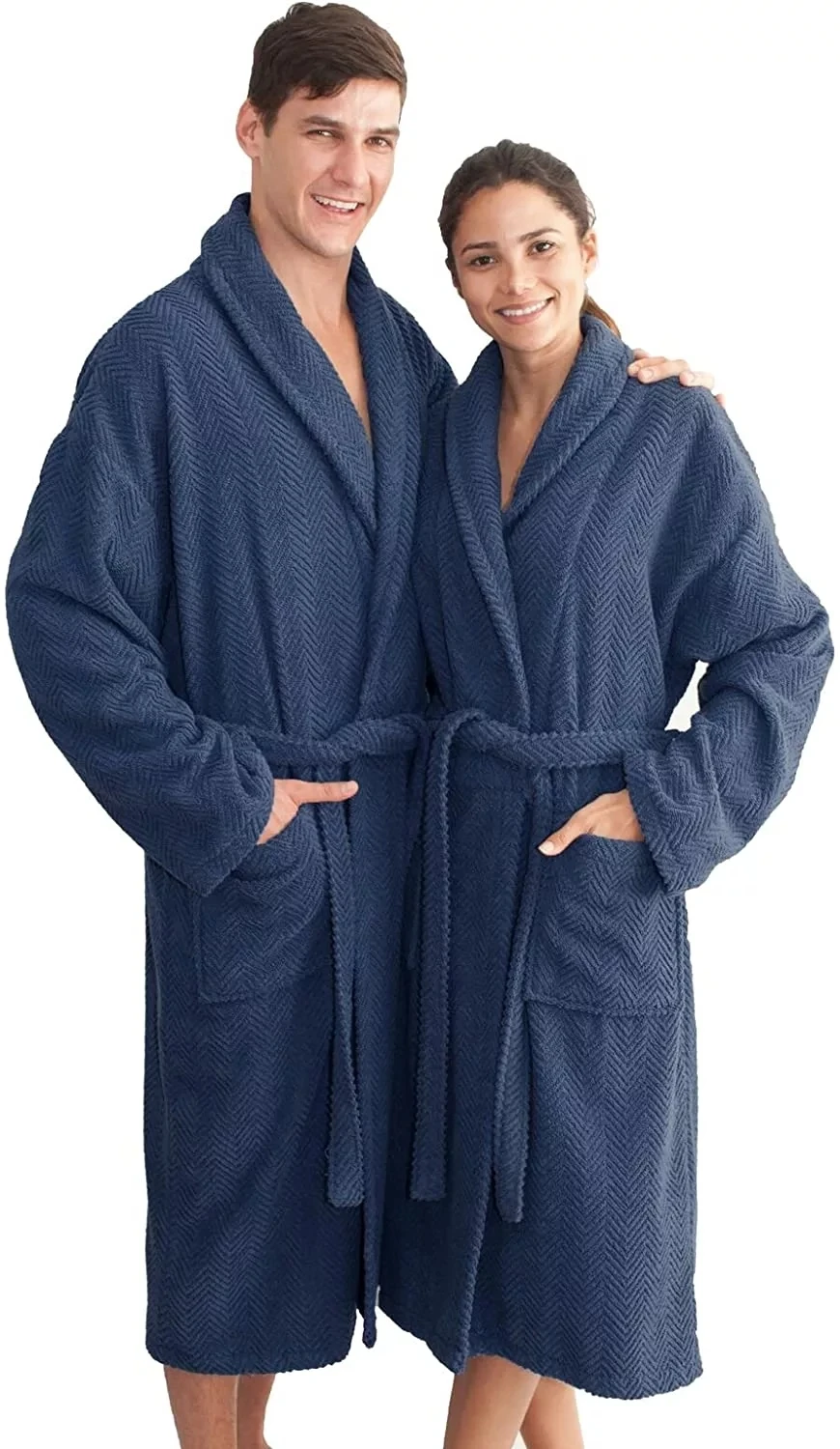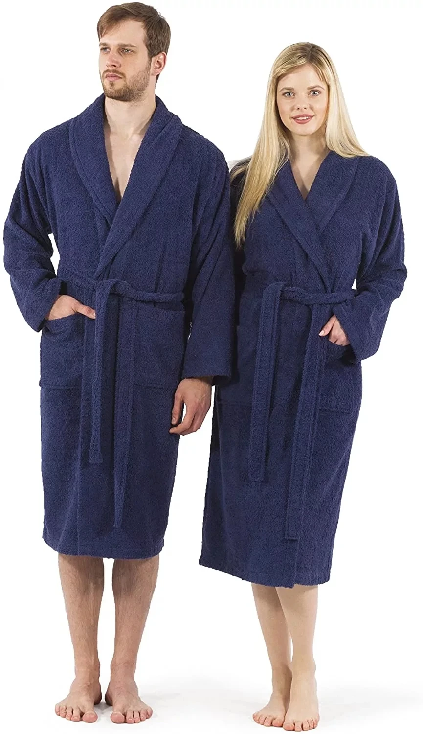 Plush terry-cotton bathrobe for luxurious spa-like comfort at home or away; for men and women (unisex) Made of 100% cotton for breathability and strength; zero twist cotton fibers ensure a supremely soft feel Highly absorbent and quick drying; light fabric weight (360 grams per square meter) for year-round use Shawl collar ups the cozy factor; removable belt; 2 front pockets; machine washable