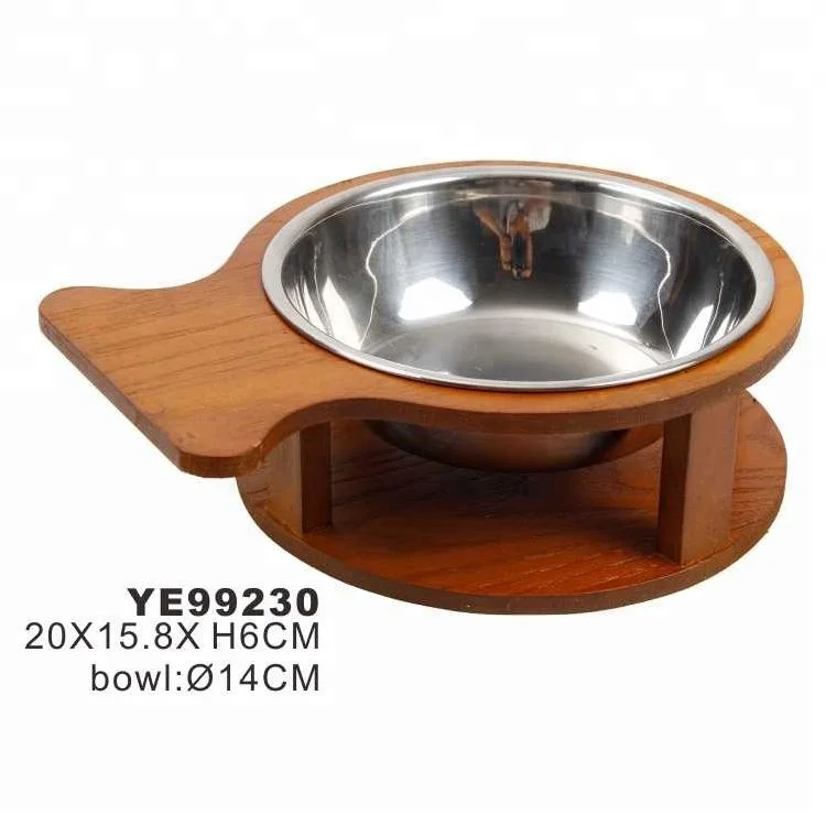 Wholesale Personalized Wood Pet Dog Cat Food Feeding Bowl Stainless Steel