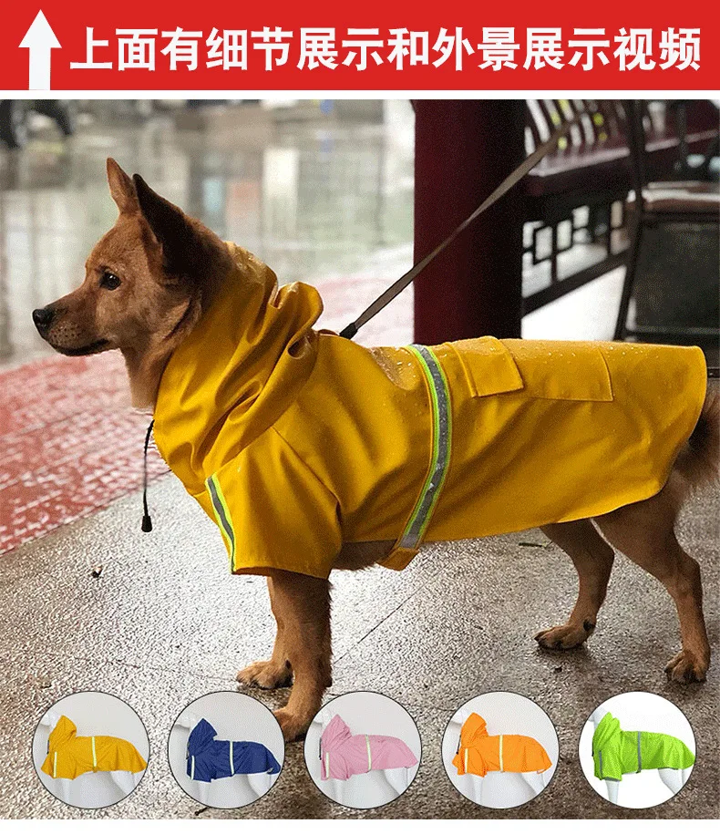 Pet Dog Apparel Large Dog Raincoat Clothes Waterproof Rain Coat With Reflective Stripe S-5XL