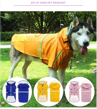 Home > Products > Pet Clothes > Pet Dog Large Dog Zipper Raincoat Clothes 5XL Rain Coat With Reflective Stripe