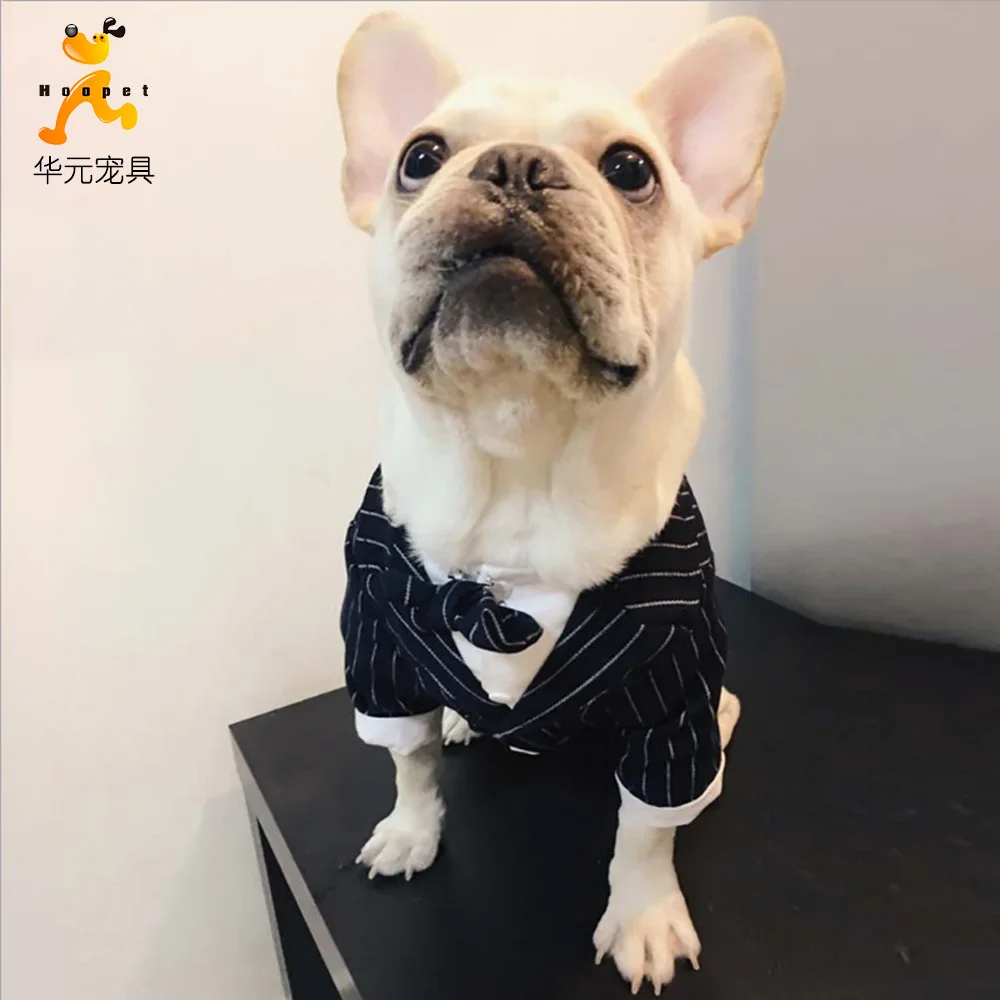 Wholesale Layered Pet Dog Striped Suits Bulldog Formal Clothes Overcoat