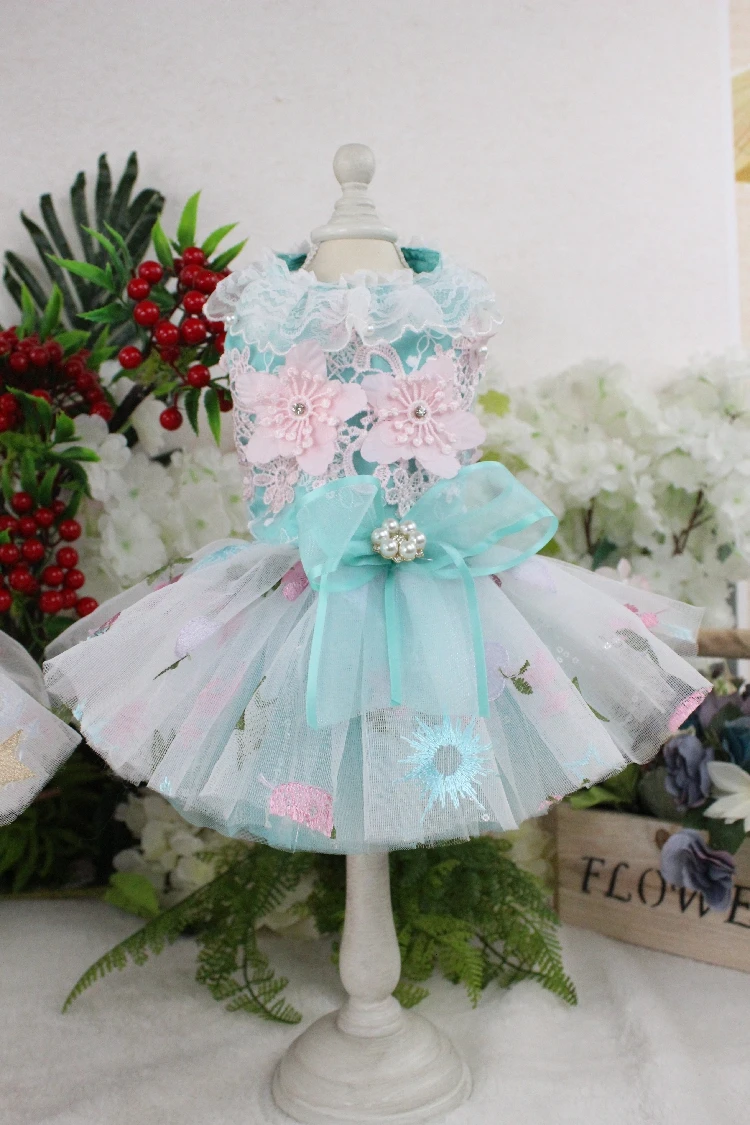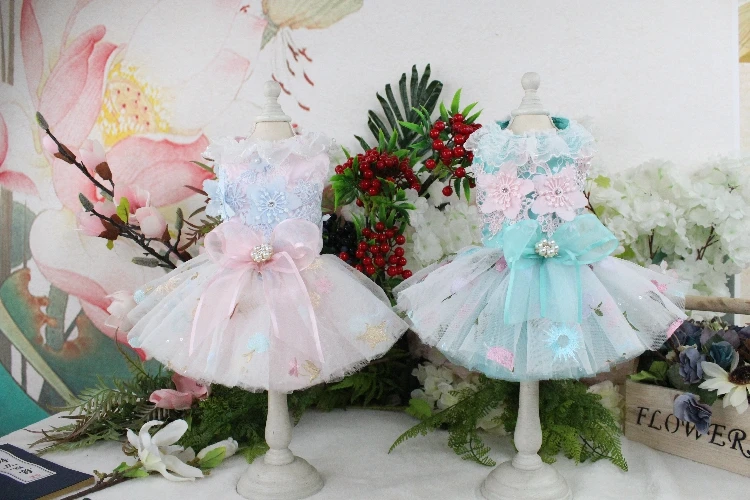 Lovely Lace Mesh Dogs Dress Pet Sequin Wedding Dresses for Dogs Skirt