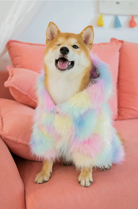 Winter New Pet Dog Little Monsters Fur Apparel Rainbow Plush Coat Small Puppy Overcoat