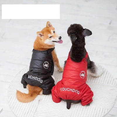Dog Pet Winter Warm Clothes Hoodie Fur Collar Overcoat Four Leg Down Jackets Apparel