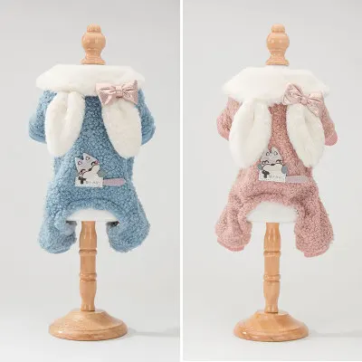 Wholesale British Shorthair Kitten Dog Pet Cat Winter Clothing Hoodie Bunny Ears Overcoat Cat Clothes